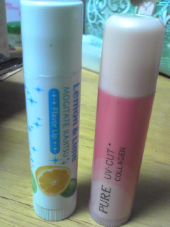 左が持ち歩く用のもぎたてリップ、右が自宅用のピュアモイスチュアリップ