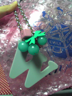 この写メだと分かりづらいと思うけどグレーのイニシャル×緑リボン×ピンクキューブ