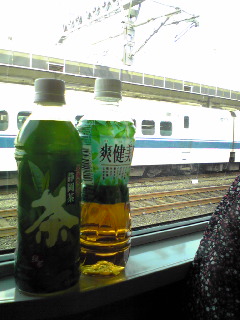 ↓旅のお共には欠かせないお茶と、浮かれてる人の腕